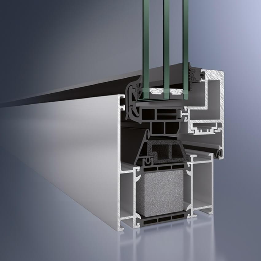 Sistem de fereastră cu balamale de 70 mm, cu capacitate mare de izolare, un coeficient de transfer termic al ramei de numai 0,8 W/m²K obținut datorită îmbinării perfecte.